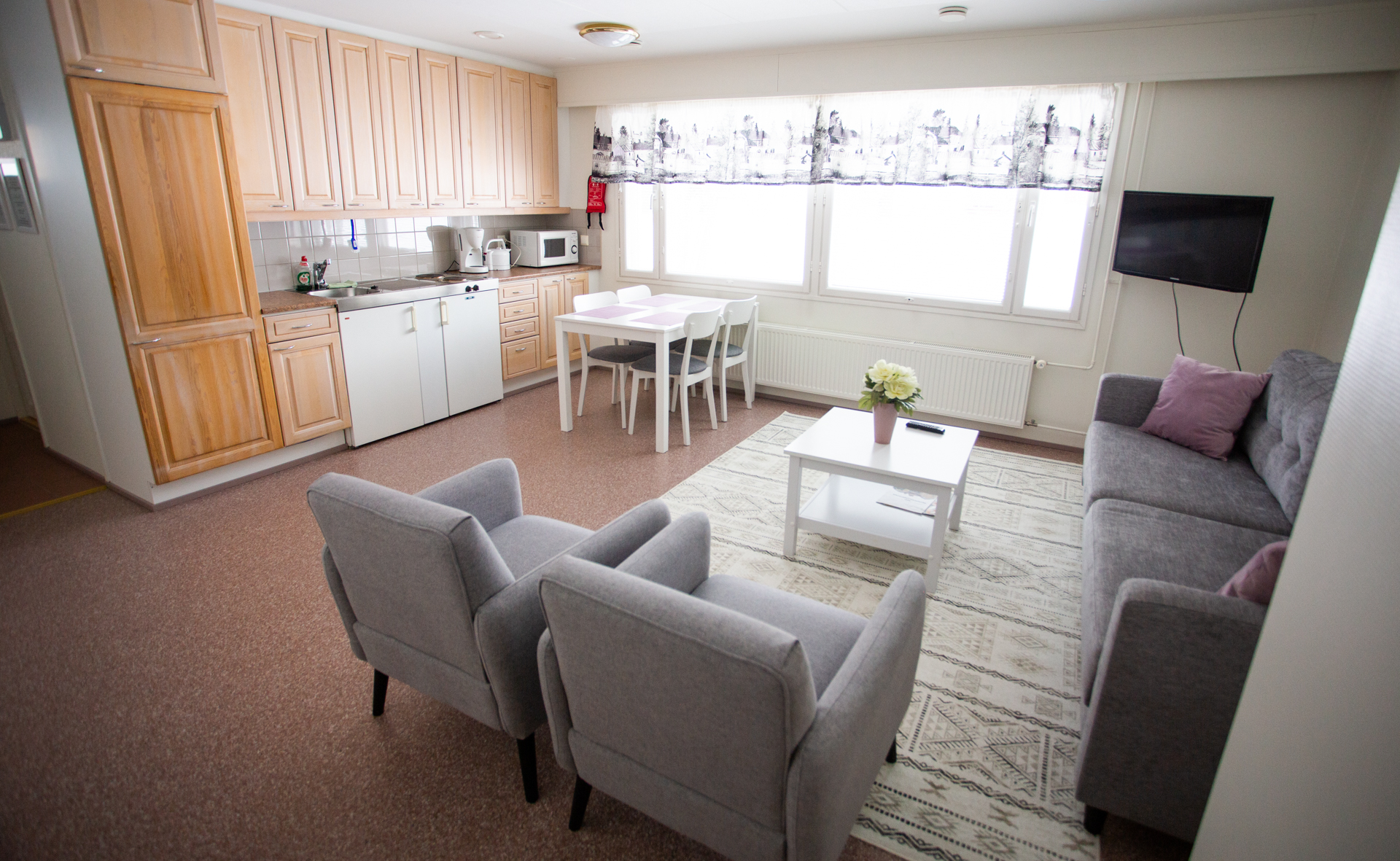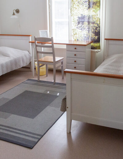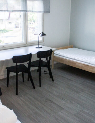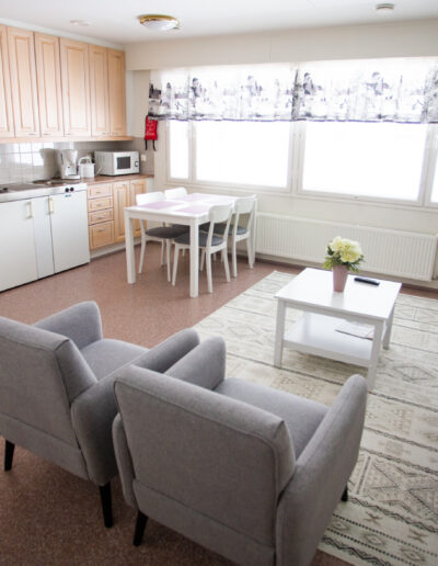 Tasokas huoneisto majoitukseen ja kokoustamiseen. Sauna, tilava olohuone, tupakeittiö, inva-wc. Huoneistossa 1 x yhden hengen huone ja 1 x kahden hengen huone. Lisäksi huoneistossa on levitettävä sohva. Kokousvarusteet varataan tarpeiden mukaan.