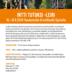 - Intti tutuksi leiri 16.–18.8.2024. Leiri täynnä, ilmoittaudu varapaikoille tästä.